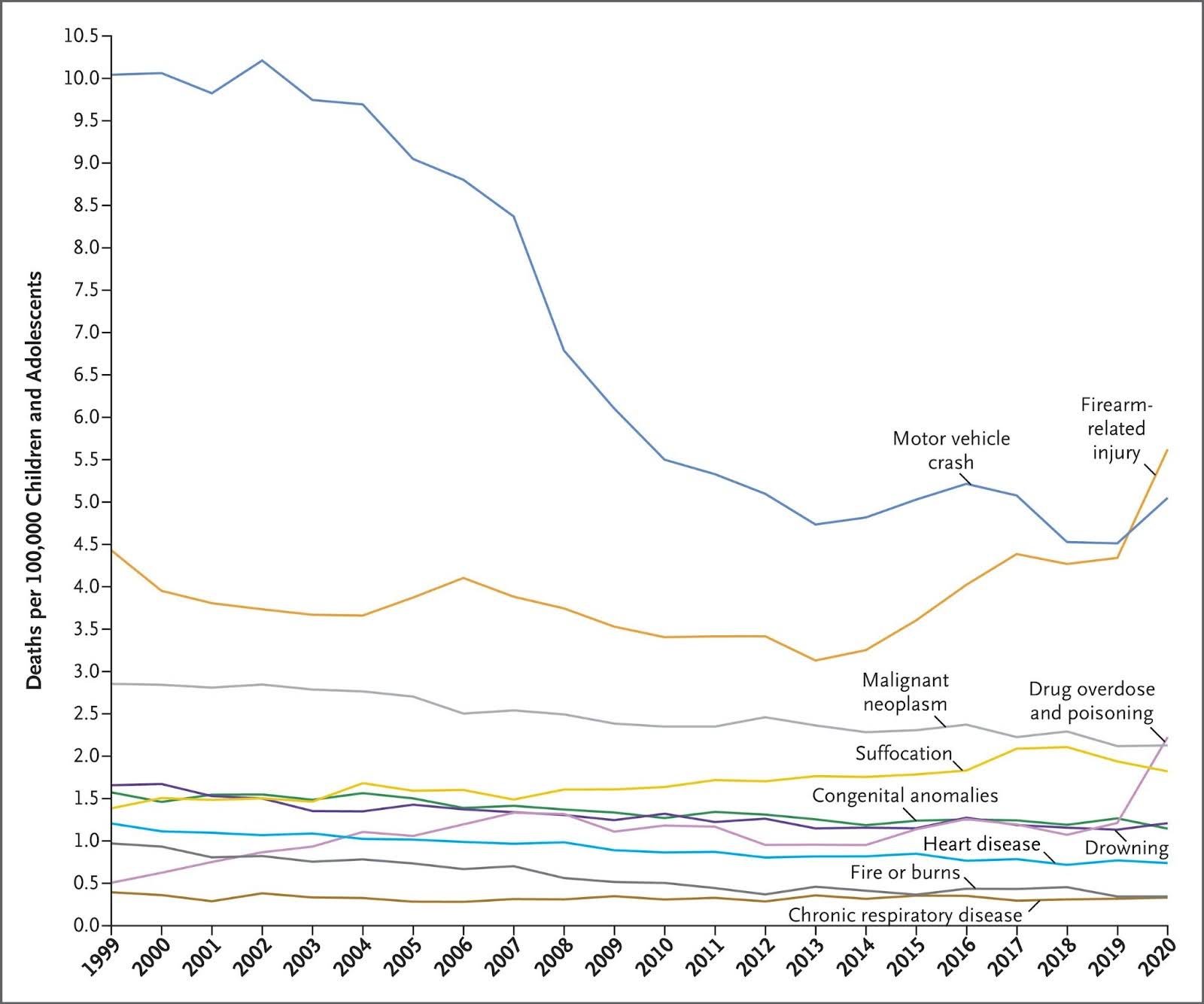 In 2019, firearms surpassed motor vehicles as the leading cause of death for children and adolescents.